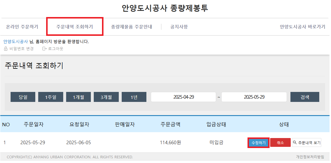 2. 주문 내역 조회하기 → 수정하기