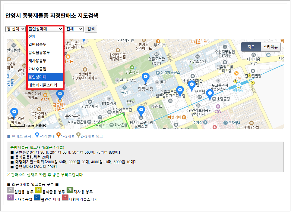 1. 안양도시공사 홈페이지 > 종량제 > 판매소 검색